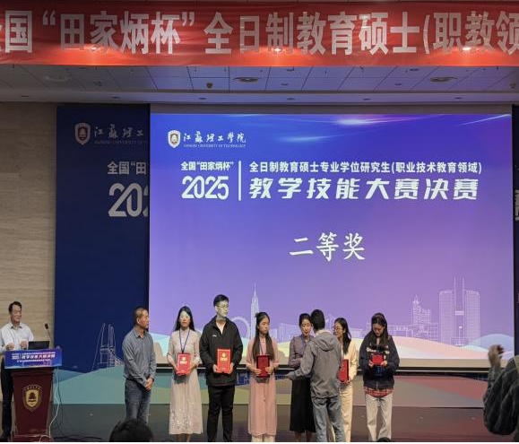 承办的2025年全国“田家炳杯”全日制教育硕士(职业技术教育领域)教学技能大赛决赛,共获一等奖1项,二等奖1项,三等奖1项,优秀教学设计奖2项,优秀指导教师奖2项。