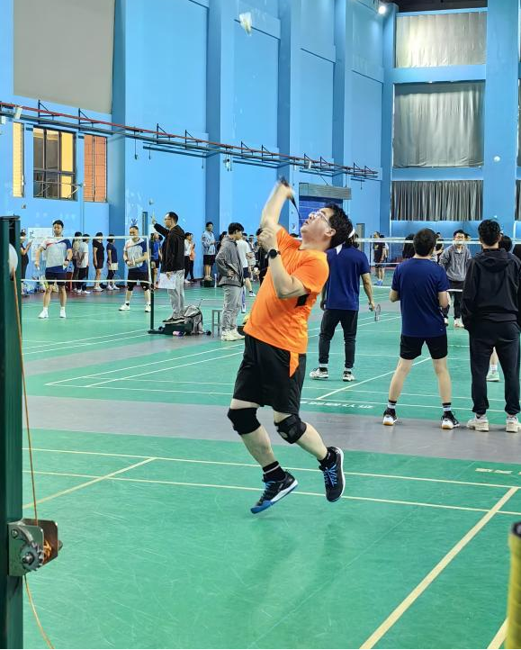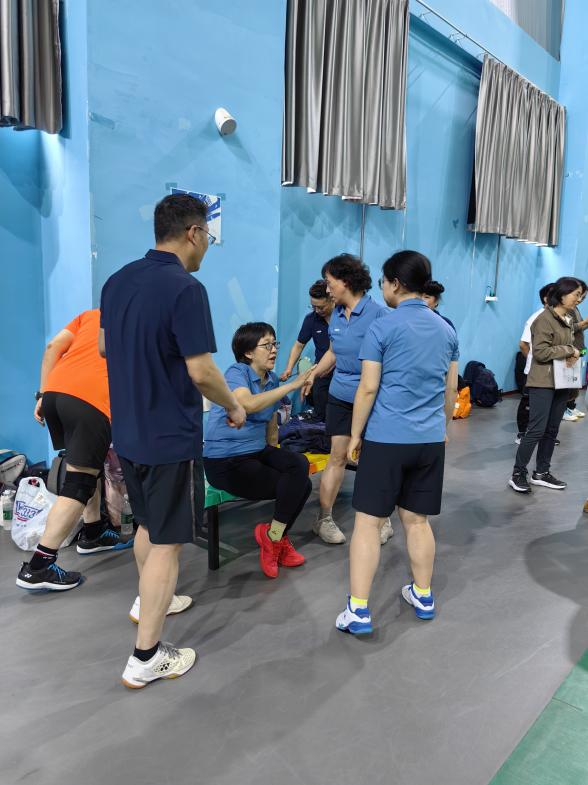 男双赛场上我院男教师凭借稳健的发挥与密切的配合,与对手展开多轮交锋。他们快速移动,积极防守,展现出良好的竞技状态。